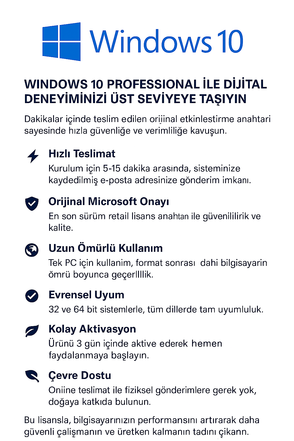 Windows 10 Pro 32/64bit Lisans Anahtarı - RETAİL KEY
